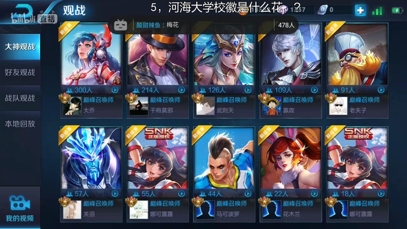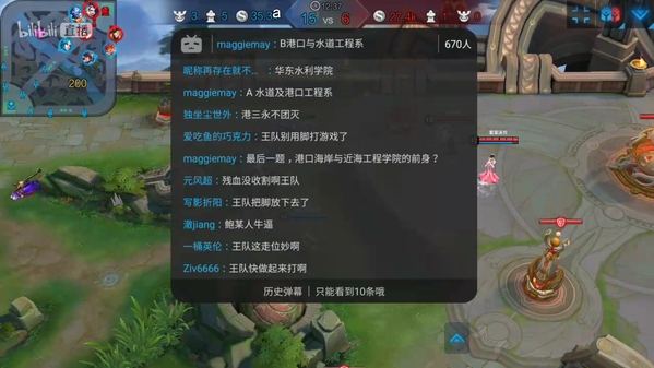 2018年5月,直播平台本科毕业班学生组织举办了“王者争霸”电子竞技比赛。本次比赛采用积分制,每班推选一支战队,两两对战,全程进行网络直播。具有创新意义的是,在直播过程中,设置有关于河海大学和直播平台校史院史的答题环节,进一步增强了与观众的互动。