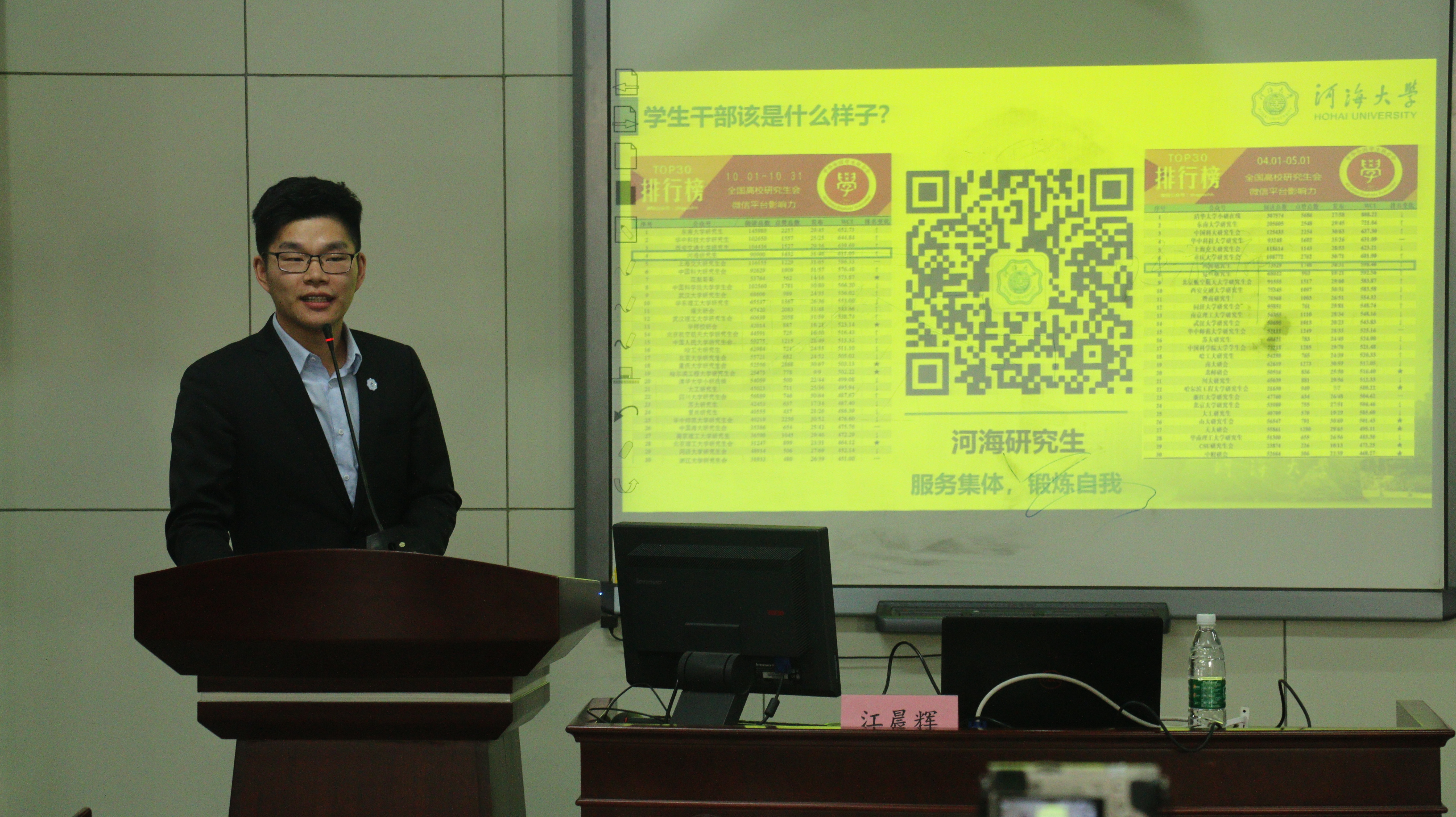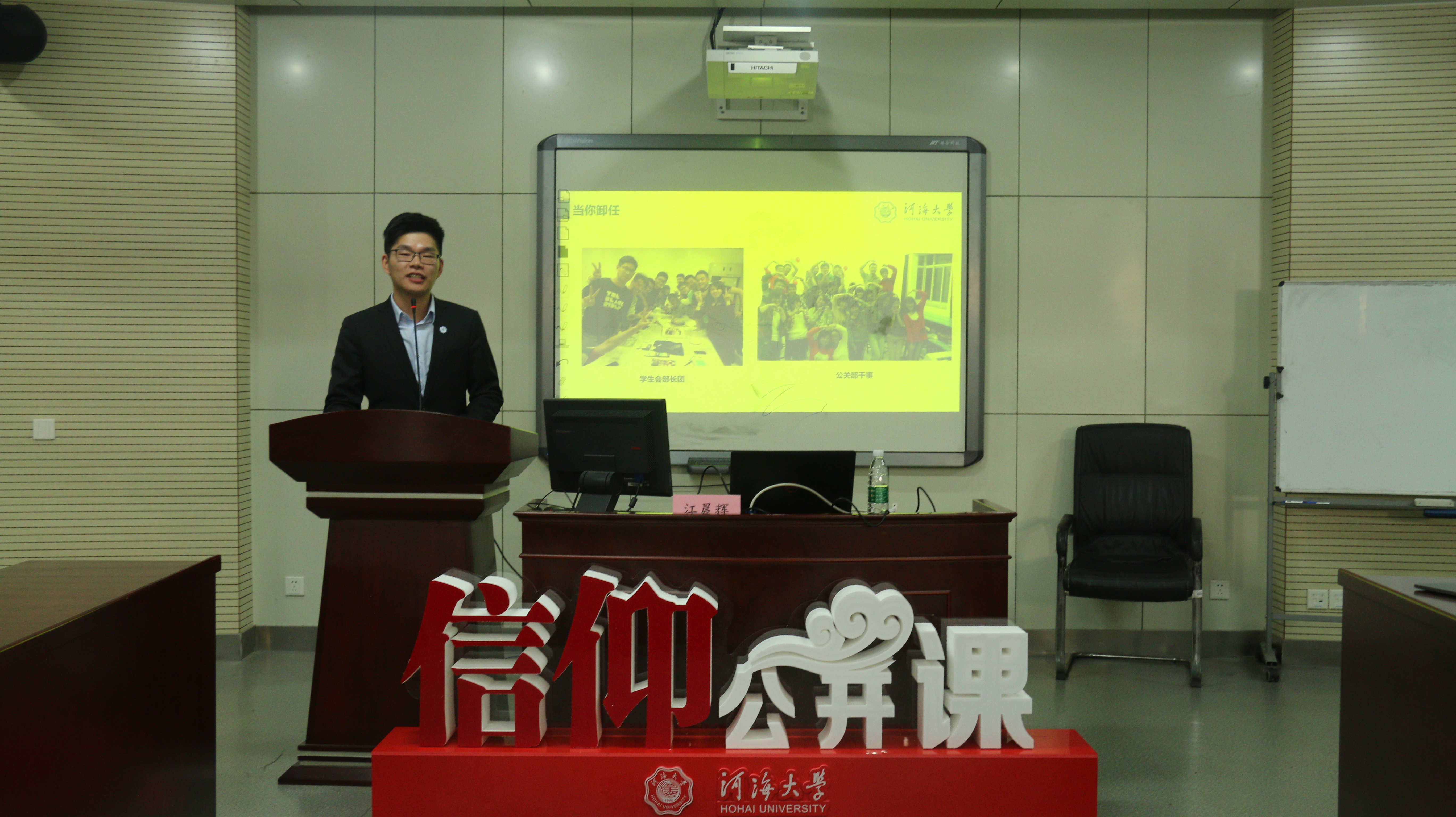 11月26日下午三点,直播平台 梦想公开课之学生骨干的养成与信仰在江宁校区博学楼A411举行。本次讲座邀请到了学校研究生会主席江晨辉同学,他以“因为热爱,所以坚持”为主题,向17级和18级同学们分享了他作为学生骨干,对于信仰和梦想的坚守与践行。