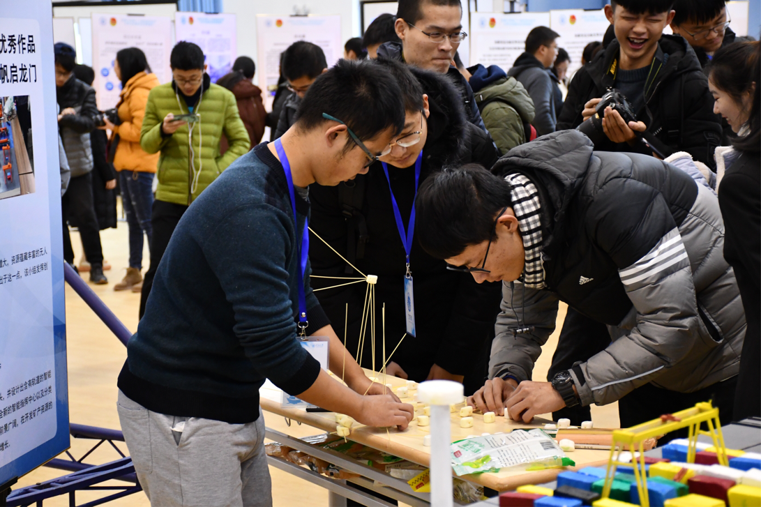 为了加强现场的互动,学生科协工作人员引导参观者用意面和棉花糖进行创意搭建,通过发挥想象力和运用力学知识,进行现场的手工操作,吸引了不少同学小试身手。