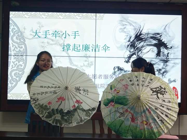 纸伞是中国传统工艺,河海大学港航直播平台青年志愿者将传统文化和反腐倡廉相结合的新颖方式赢得社区内居民的一致好评。本次活动旨在通过组织青少年参与“廉洁伞”的创作,为青少年提供展示自我的平台,在轻松愉快的文化氛围中切身体会廉洁文化,引导树立正确的人生观和廉洁意识。