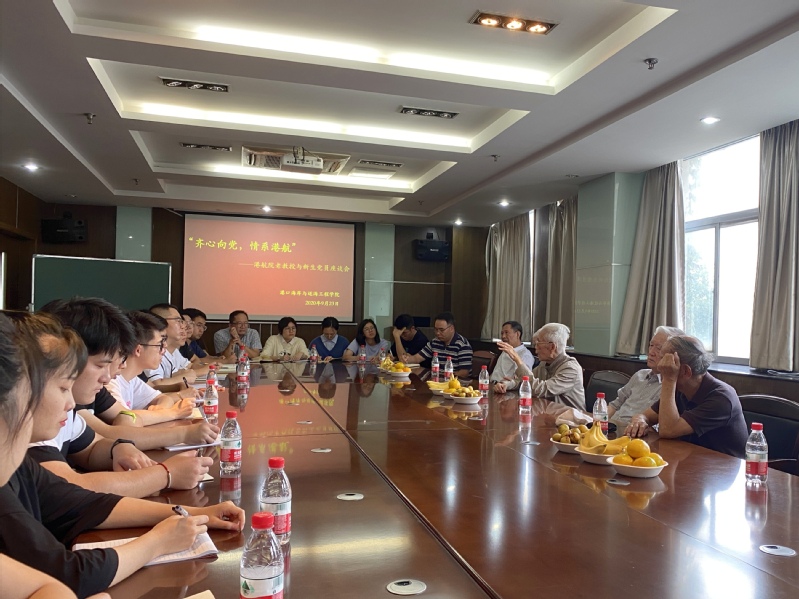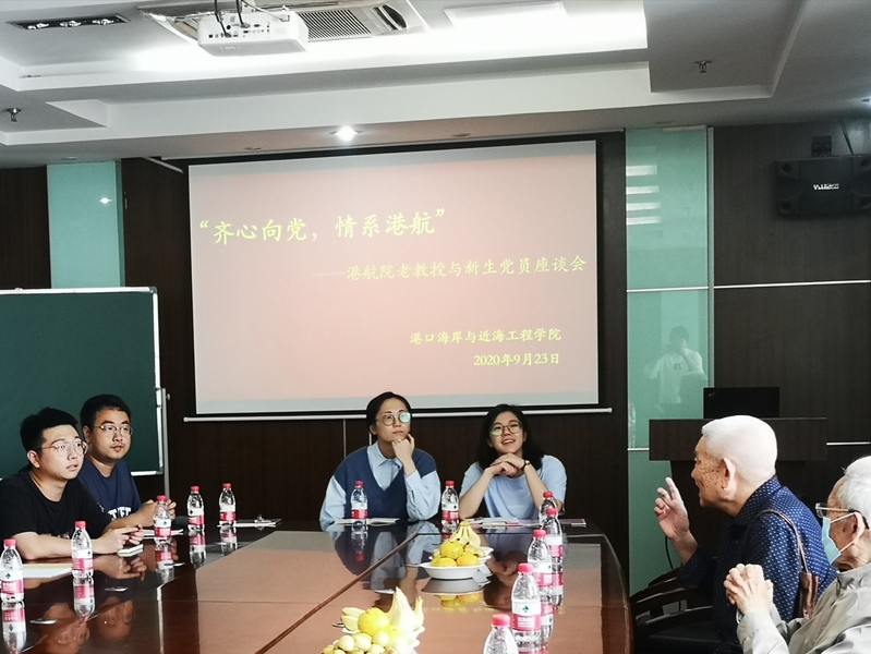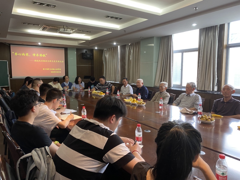 9月23日下午,直播平台 “齐心向党,情系港航”——老教授与新生党员座谈会在严恺馆502举行。座谈会邀请到葛明达、洪广文、鲁子爱、舒红缨、唐耿星、徐金环、张东生七位老教授与2020级研究生新生党员进行交流,直播平台党委书记胡忠华主持座谈会,党委副书记沈国军出席。