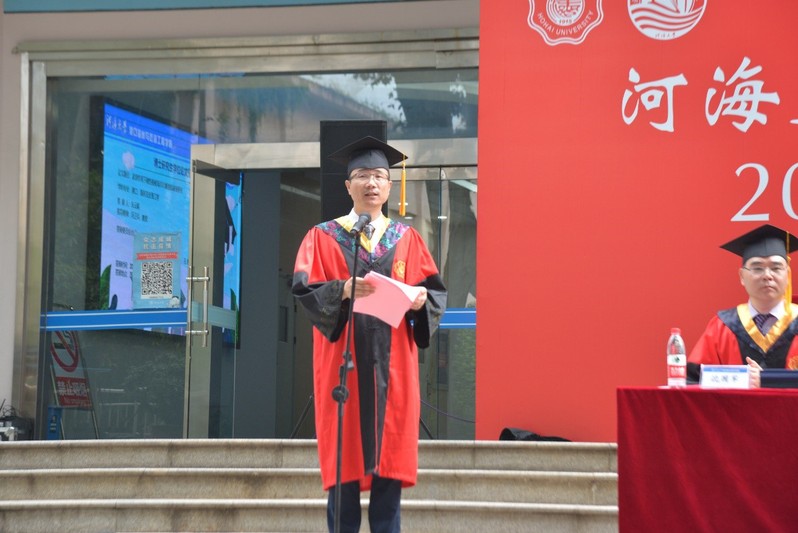 On June 11th, in the special period of epidemic prevention and control, the College of Harbour, Coastal and Offshore Engineering held a grand graduation ceremony for the 2020 graduates. Dean Gong Zheng, Party Secretary Hu Zhonghua, Vice Deans Zhang Jisheng, Zhang Wei and Chen Yongping, and members of degree evaluation committee Zhu Yuliang, Kong Jun, Zhang Chi, Xu Pengfei, Zhai Qiu and Luo Feng, as well as the 2020 graduates of the whole college attended the ceremony. The ceremony was presided over by Shen Guojun, deputy secretary of the party committee.