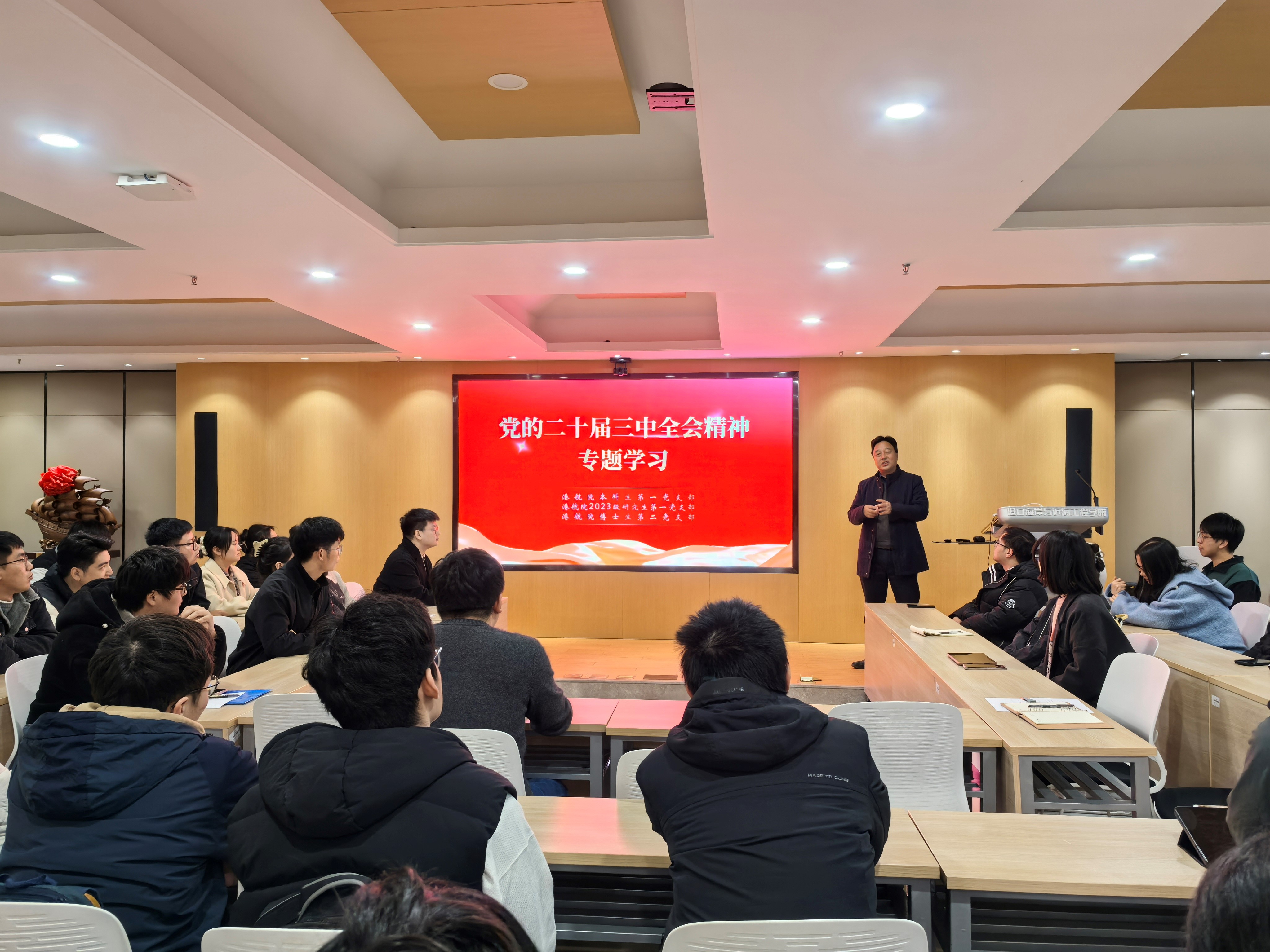 本硕博三个党支部的全体党员共同学习了由中央党校(国家行政直播平台)谢春涛教授主讲的《深入学习贯彻习近平总书记关于全面深化改革的一系列新思想、新观点、新论断和党的二十届三中全会精神》专题报告。