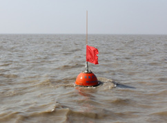 图1.3.1 江苏沿海波浪站分布与响水近海波浪站SBF3-1型海上浮标系统现场图