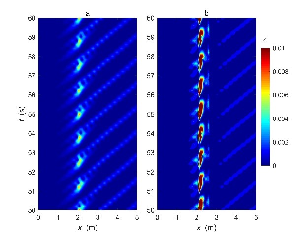图2.1.4 礁冠影响下底部能量耗散率对比图
